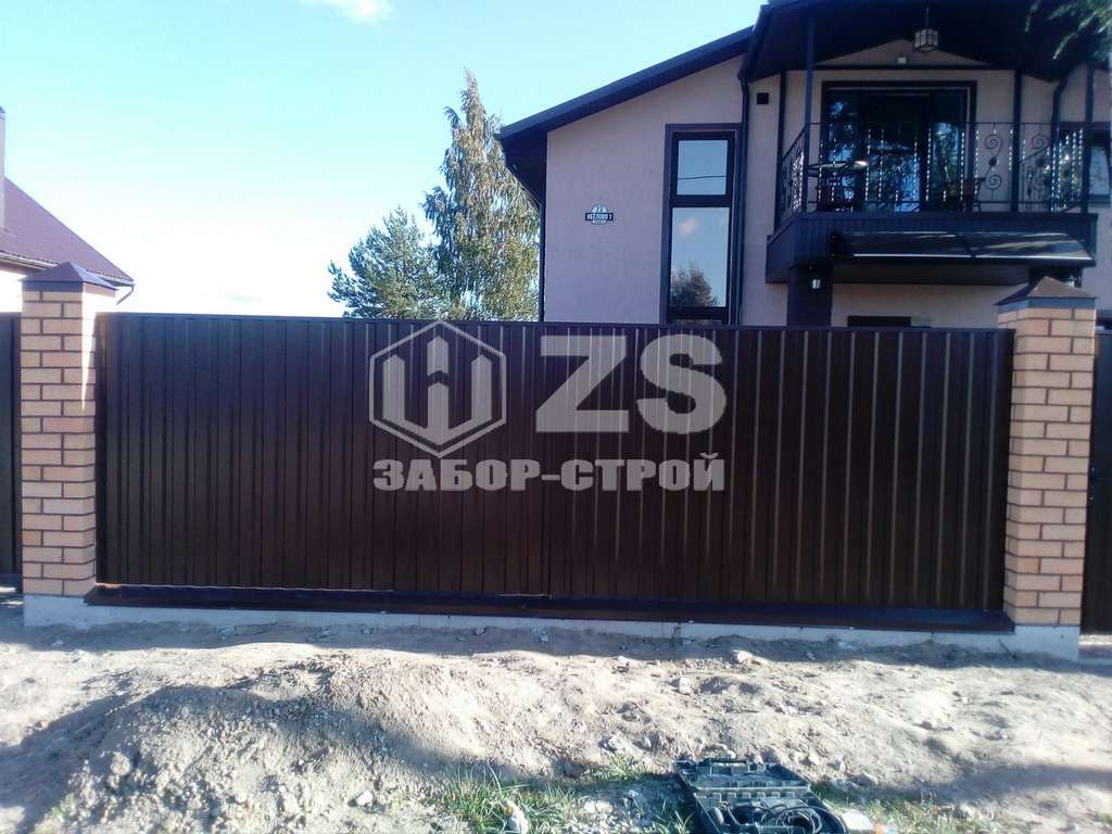 Ленточный с кирпичными столбами