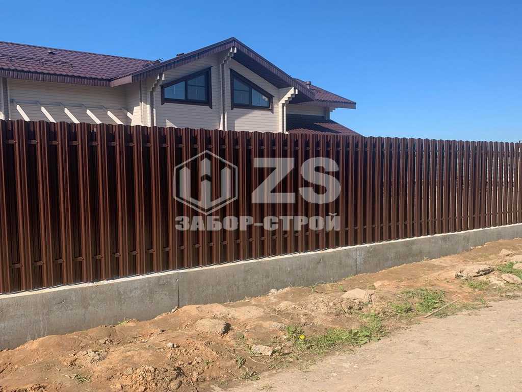 - Забор на ленточном фундаменте из евроштакетника 45 метров