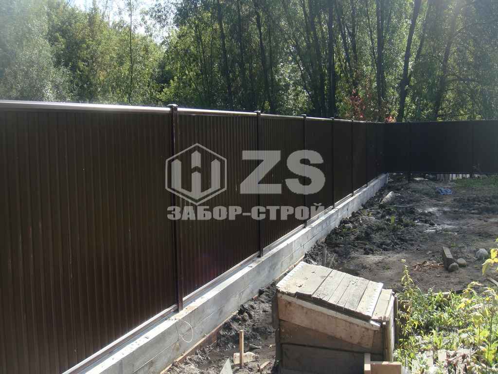 - Забор на ленточном фундаменте из профнастила 25 метров
